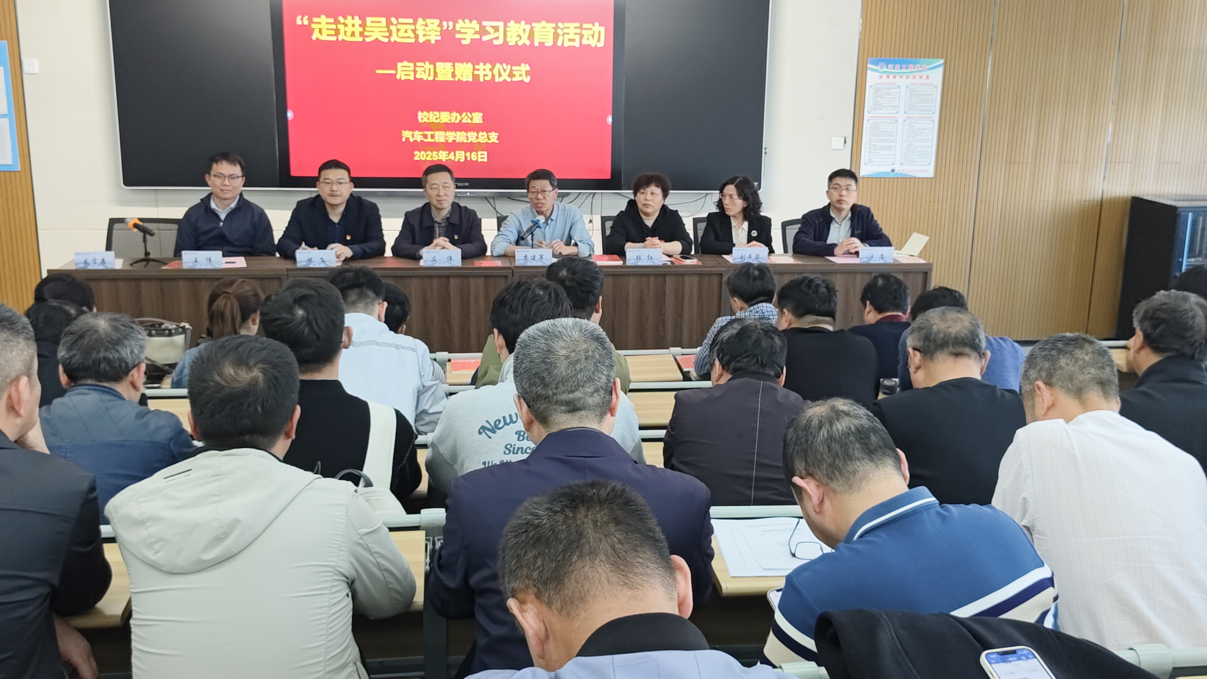 4月16日下午,由校纪委办公室主办、汽车工程学院承办的“走进吴运铎”系列学习教育活动在行远楼隆重启动,并向汽车工程学院的优秀师生代表举行了赠书仪式。校纪委李建军副书记、张红主任出席并作专题讲话,特别展示了吴运铎的著作《把一切献给党》珍本。通过讲解吴运铎革命生涯的奋斗轨迹,激励汽车学院全体师生学习他“把一切献给党”的忠诚担当以及开拓创新的工匠精神。