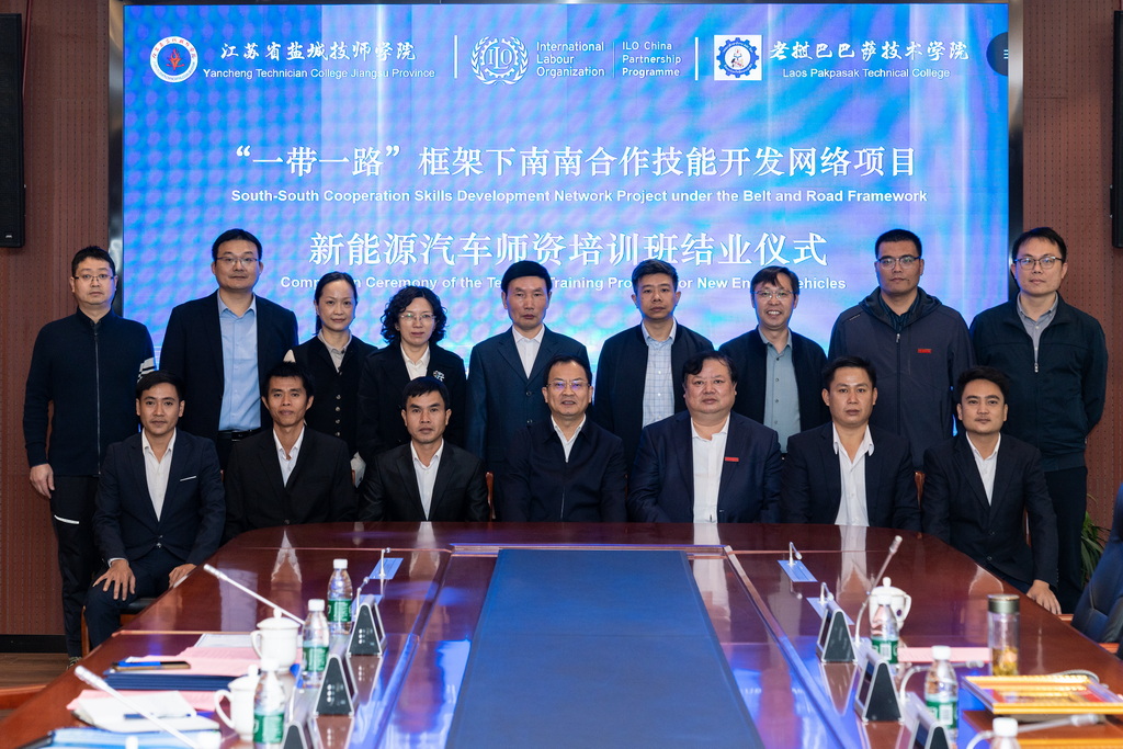 11月3日,学校与老挝巴巴萨职业技术学院“一带一路”南南合作技能开发网络合作项目新能源汽车师资培训班顺利完成全部教学任务,在我校圆满结班。校长张兵出席结业仪式,党委委员、副校长唐监怀主持会议。党政办公室、宣传部、教务处、汽车工程学院等部门负责人以及老挝巴巴萨技术学院的5名教师、相关参培老师参加了结业仪式。